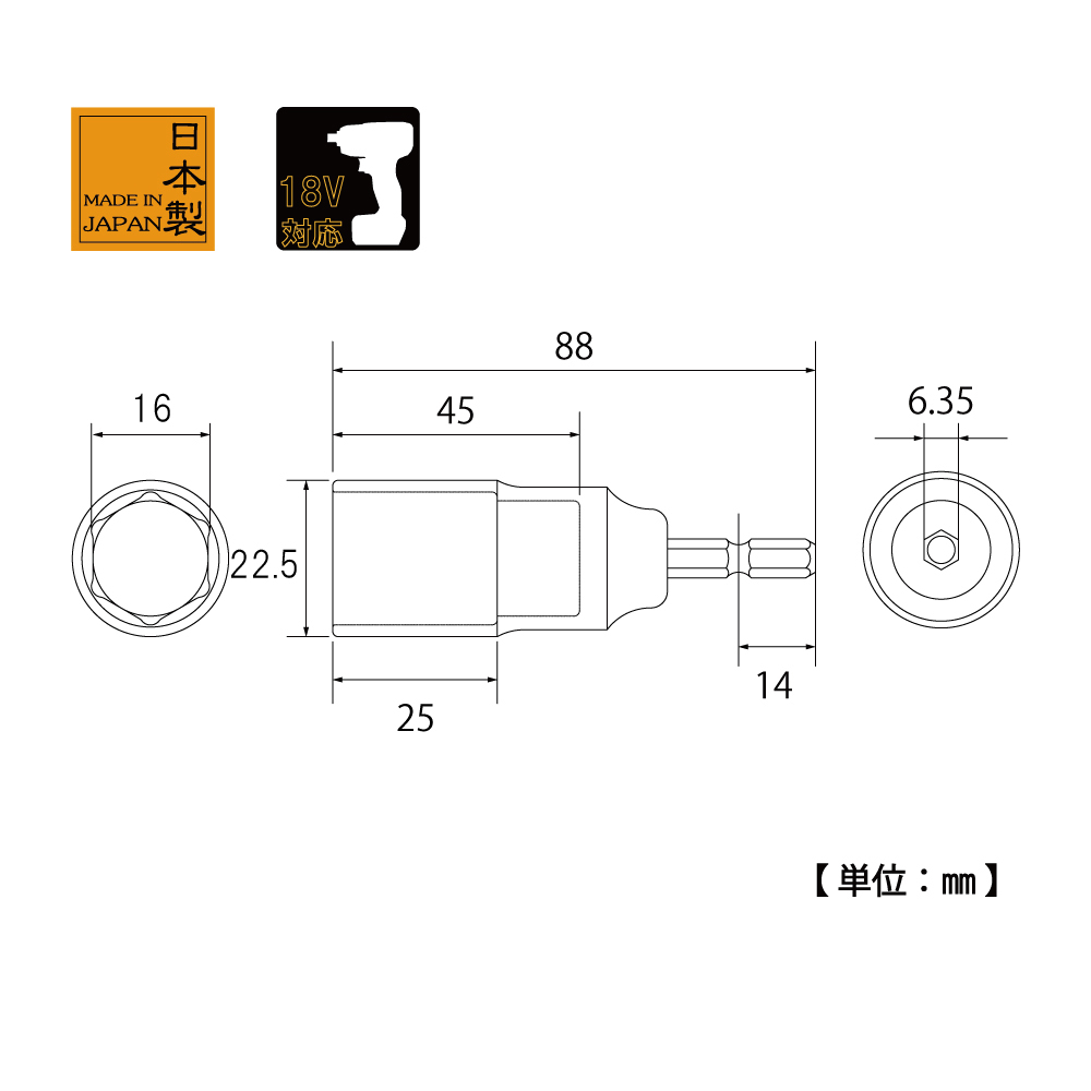 TOP Kogyo EDS-16C Compact Socket Bit (16mm) | EMIN.COM.LA