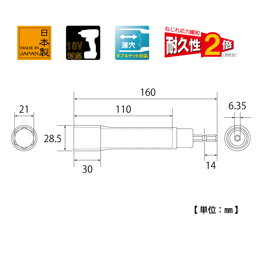 TOP Kogyo EDX-21L Alpha Socket Long Type (21mm) | EMIN.COM.LA