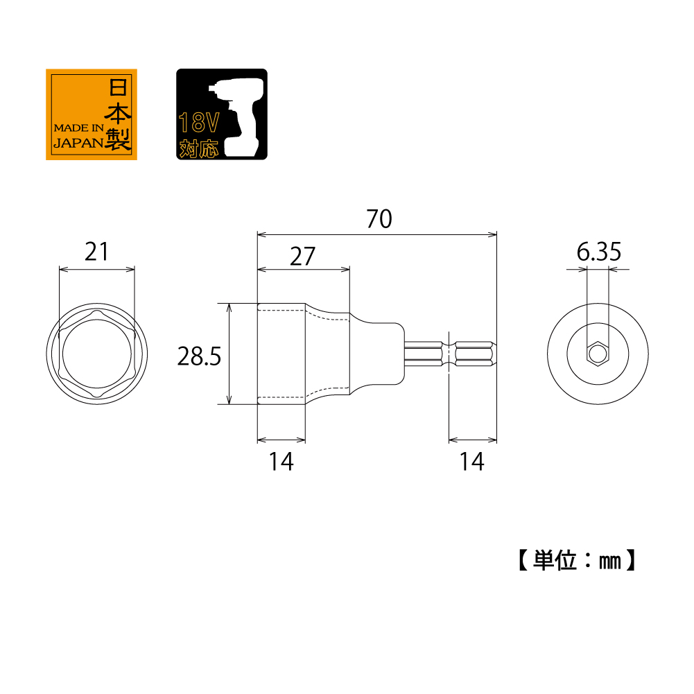 TOP Kogyo EHS-21 Short Socket Bit (21mm) | EMIN.COM.LA