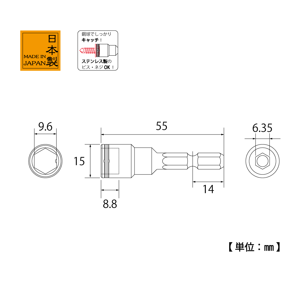 TOP Kogyo EHX-9.6B Hex Setter (with balls) (9.6mm) | EMIN.COM.LA