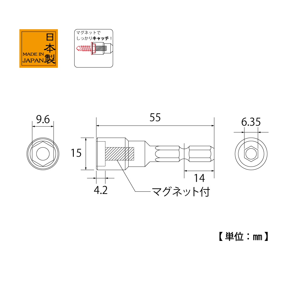 TOP Kogyo EHX-9.6M Hex Setter (with magnet) (9.6mm) | EMIN.COM.LA