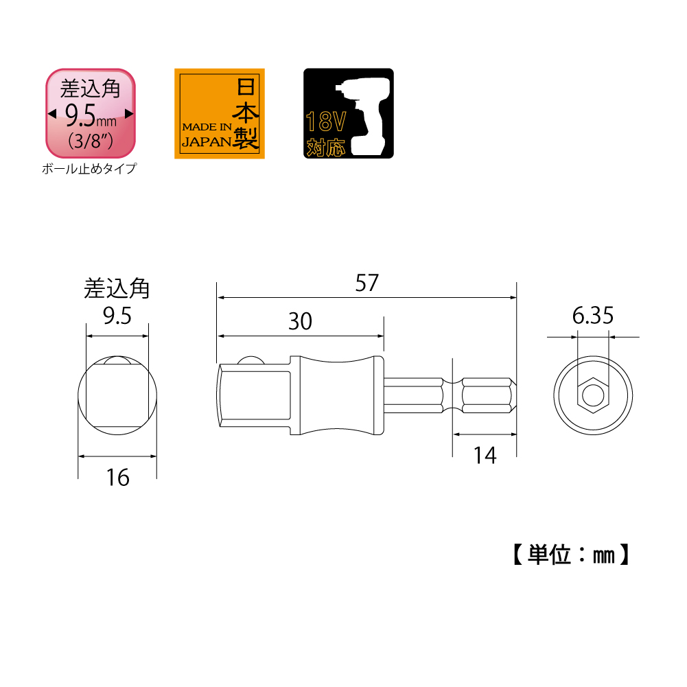 TOP Kogyo ESA-3D Socket Bit Adapter (57mm) | EMIN.COM.LA