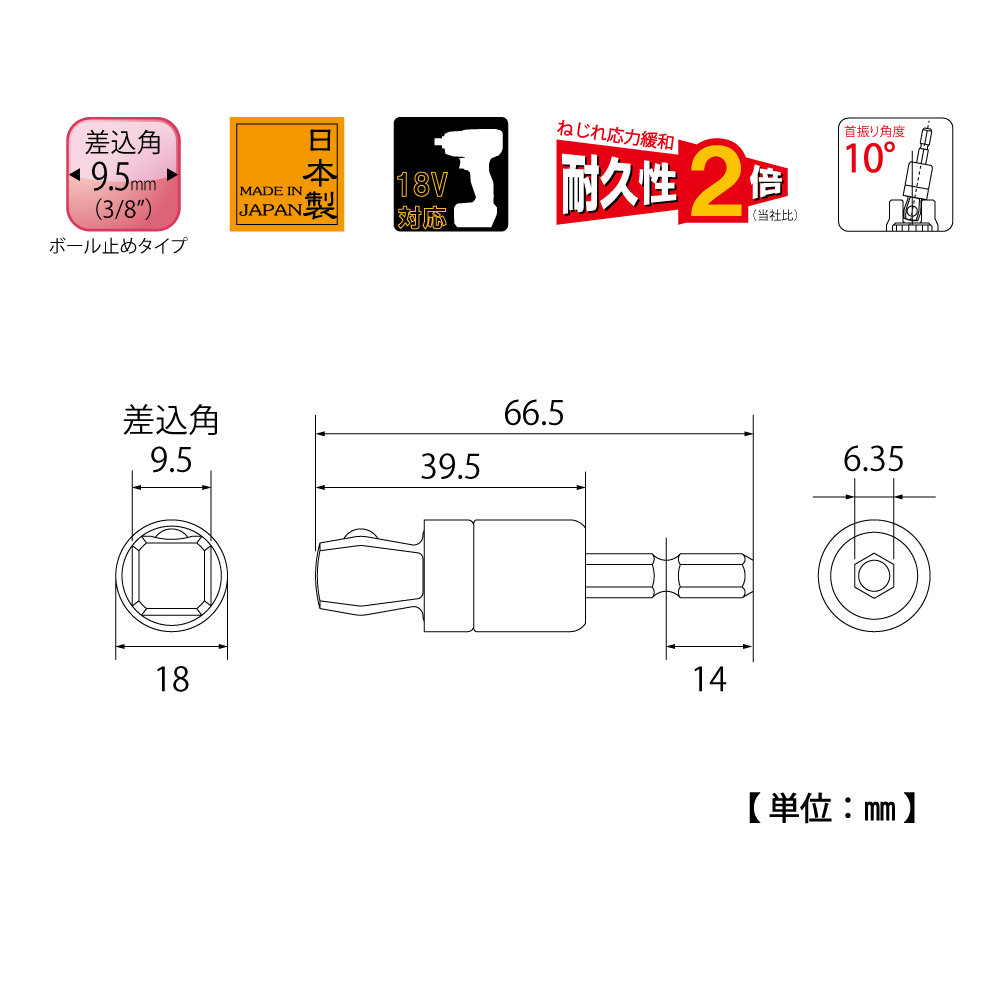 TOP Kogyo ESA-3FX Alpha Flex Socket Adapter (3/8", 10°) | EMIN.COM.LA