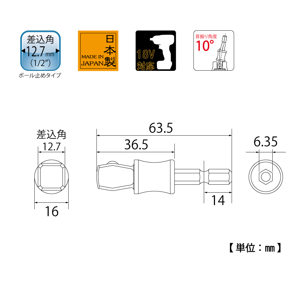 TOP Kogyo ESA-4F Flex Socket Adapter (10°, 63.5mm) | EMIN.COM.LA