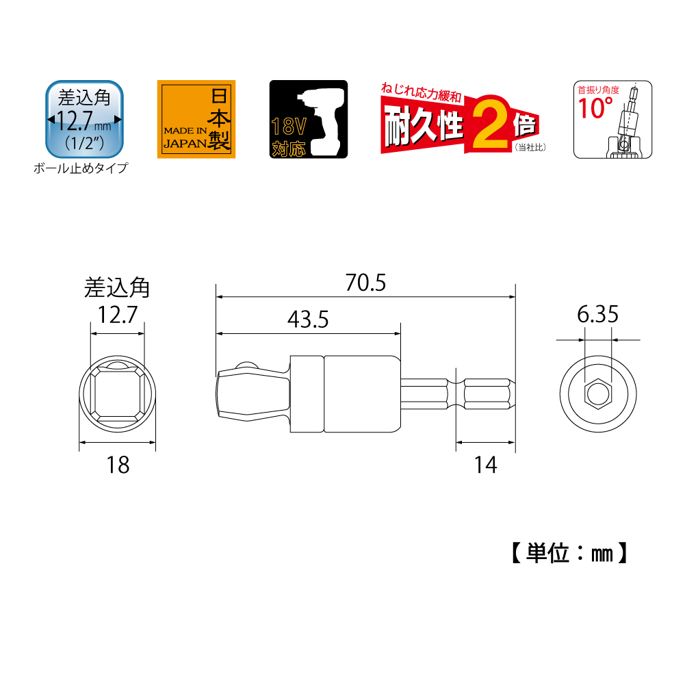 TOP Kogyo ESA-4FX Alpha Flex Socket Adapter (1/2", 10°) | EMIN.COM.LA