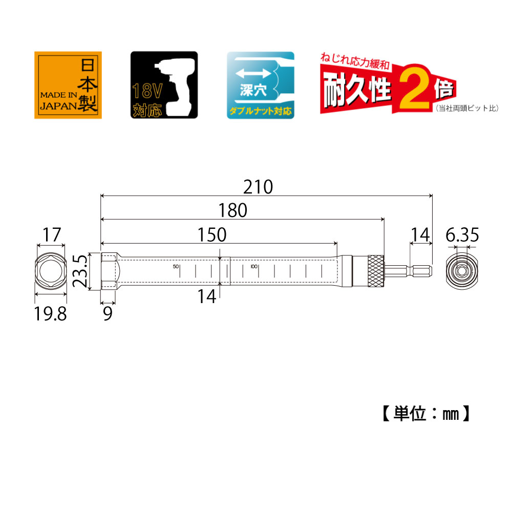 TOP Kogyo ESK-17SL Spare shaft socket super long type (17mm) | EMIN.COM.LA