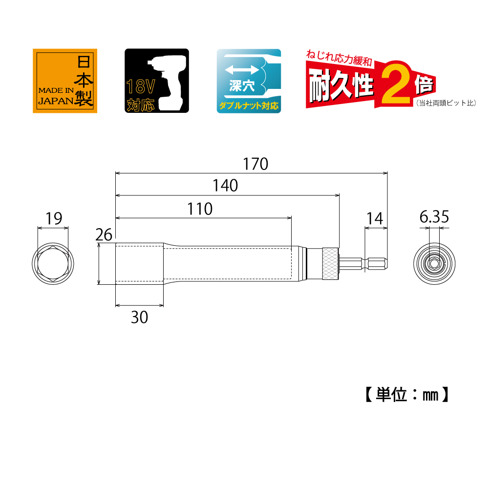 TOP Kogyo ESK-19L Spare shaft socket long type (19mm) | EMIN.COM.LA