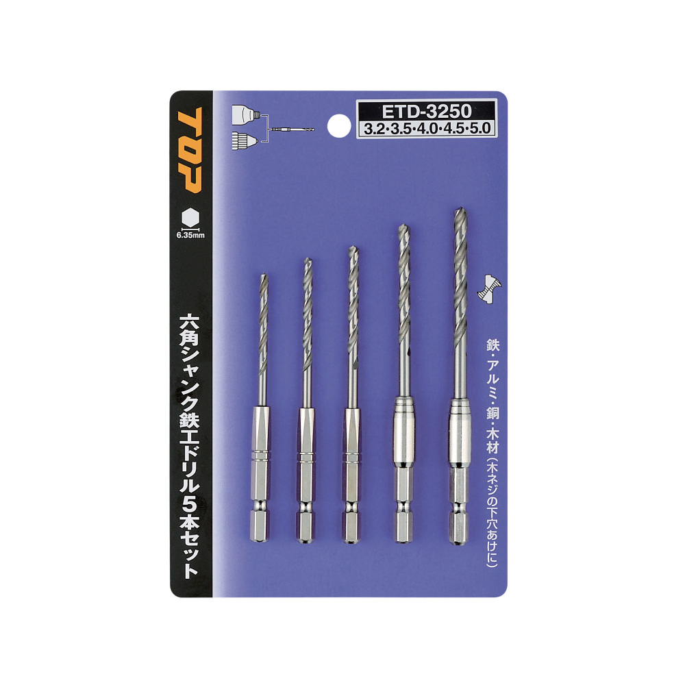 TOP Kogyo ETD-3250 Hex Shank Metal Drill Set (3.2, 3.5, 4.0, 4.5, 5.0mm) | EMIN.COM.LA