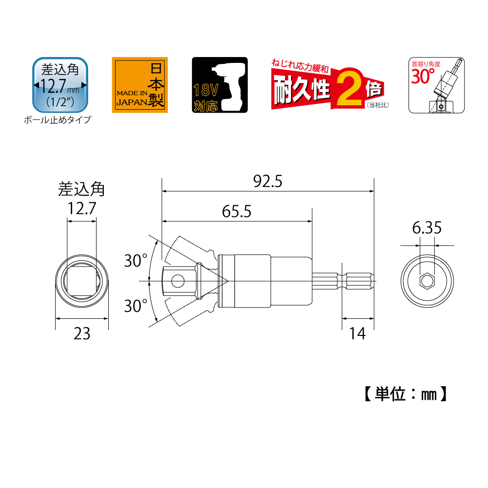 TOP Kogyo EUA-4DX Alpha Universal Socket Bit Adapter (1/4" ~ 1/2", 30 °) | EMIN.COM.LA
