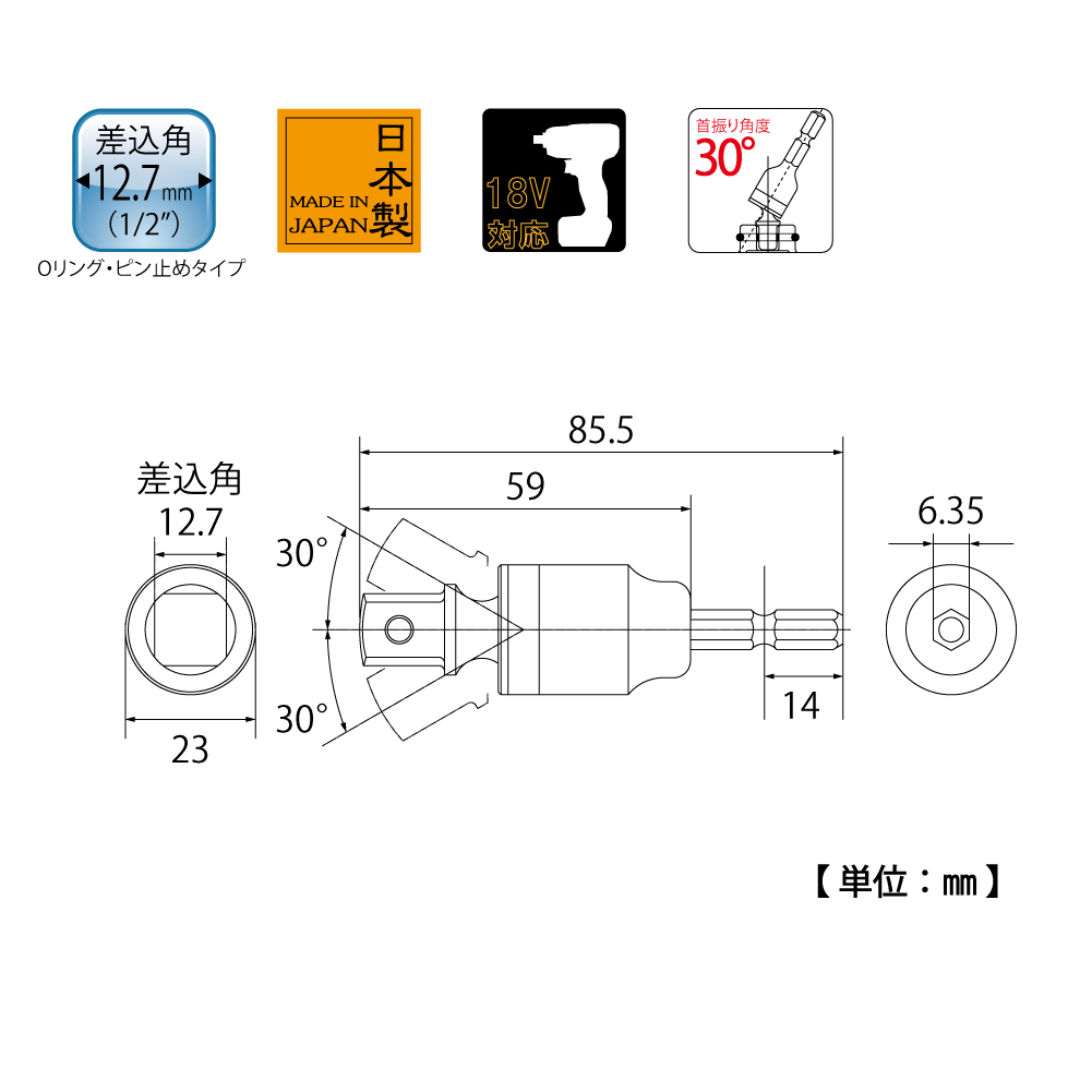 TOP Kogyo EUA-4P Universal Impact Socket Adapter (30°, 85.5mm) | EMIN.COM.LA