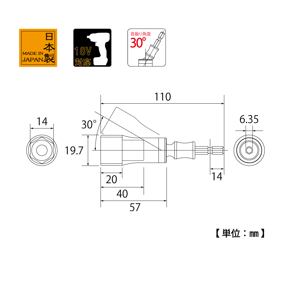 TOP Kogyo EUS-14 Universal Socket Bit (14mm, 30°) | EMIN.COM.LA