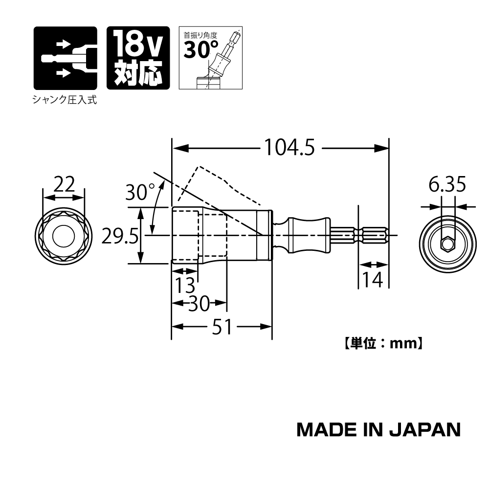 TOP Kogyo EUS-22S Universal Short Socket Bit (22mm, 30°) | EMIN.COM.LA
