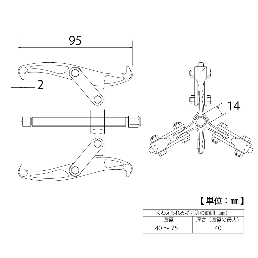 TOP Kogyo GP3-75 Gear Puller (3-jaws) (40~75mm) | EMIN.COM.LA