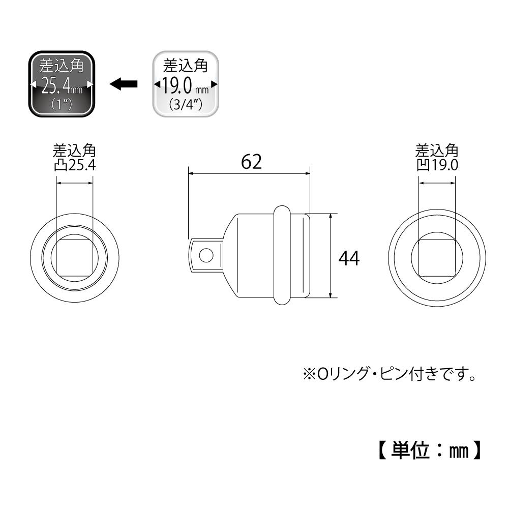 TOP Kogyo PAD-68 Impact Socket Adapter (62mm) | EMIN.COM.LA