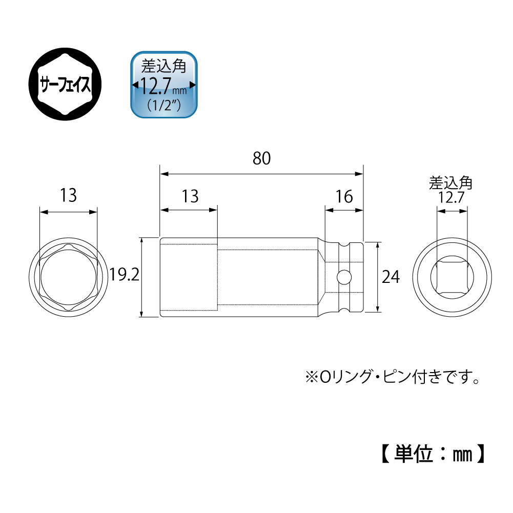 TOP Kogyo PT-413SL Super Long Impact Socket (1/2'', 13mm) | EMIN.COM.LA