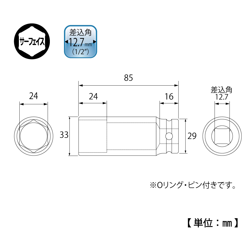 TOP Kogyo PT-424SL Super Long Impact Socket (1/2'', 24mm) | EMIN.COM.LA
