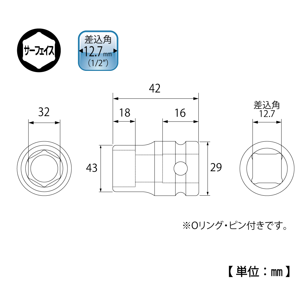 TOP Kogyo PT-432 Impact Socket (1/2'', 32mm) | EMIN.COM.LA