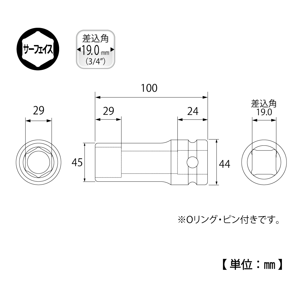 TOP Kogyo PT-629L Impact Deep Socket (3/4'', 29mm) | EMIN.COM.LA