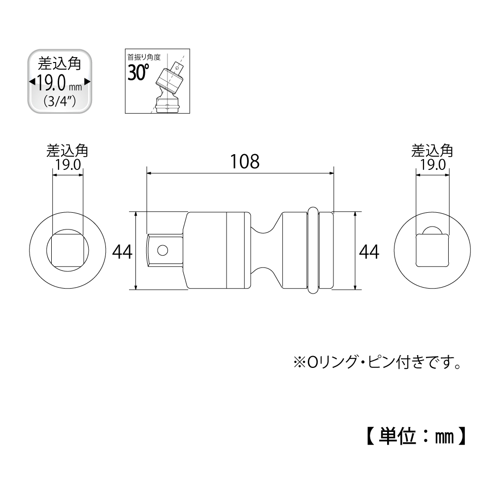 TOP Kogyo PUN-6 Impact Universal Joint (3/4'', 108mm) | EMIN.COM.LA