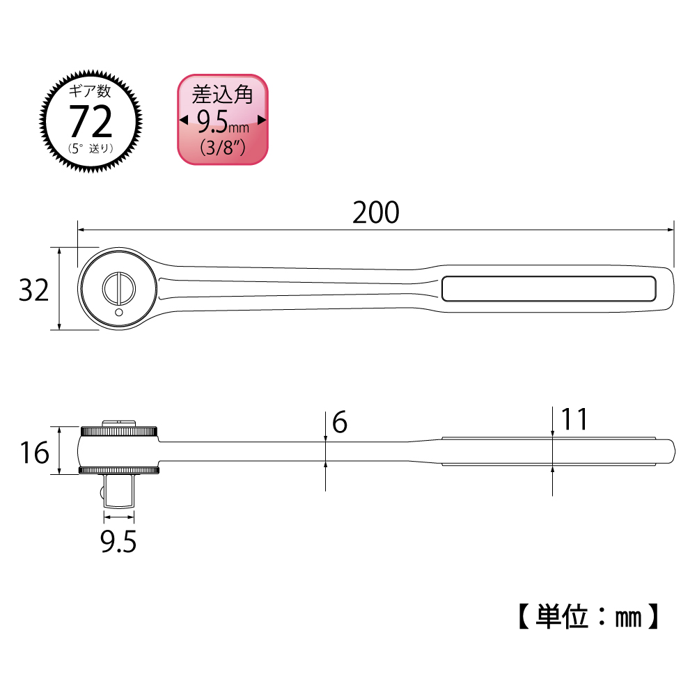 TOP Kogyo RH-3 Ratchet Handle (3/8", 200mm) | EMIN.COM.LA