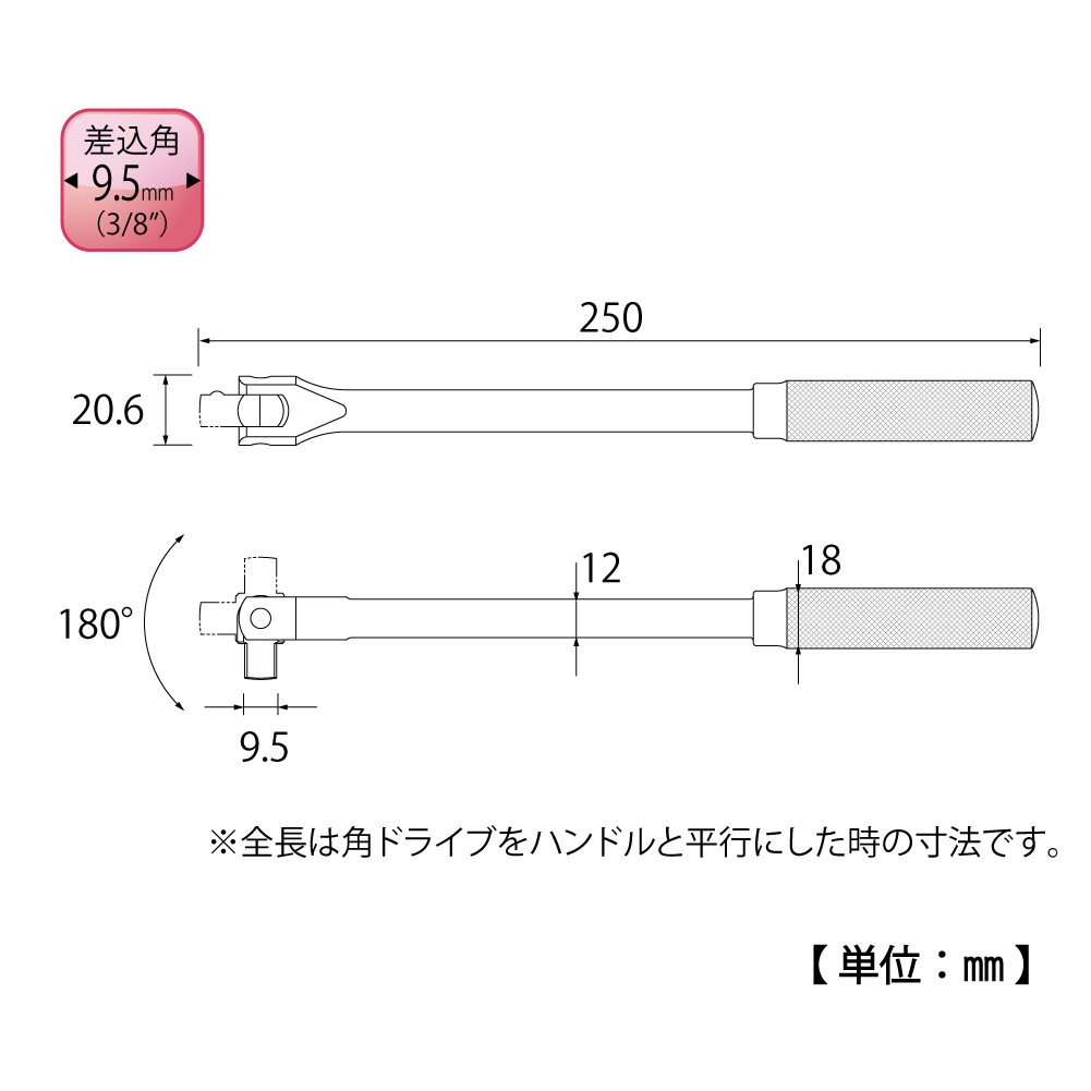 TOP Kogyo S-3 Spinner Handle (3/8'', 250mm) | EMIN.COM.LA