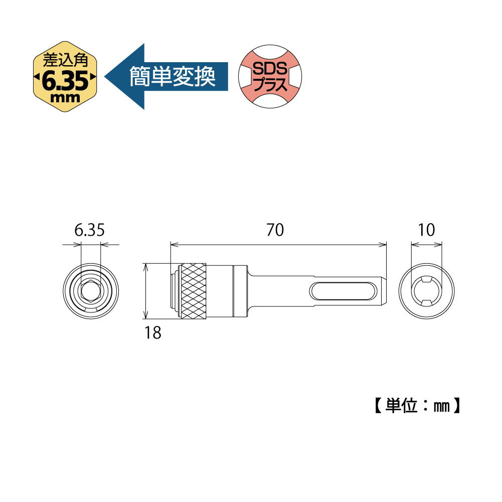 TOP Kogyo SDS-635 SDS Plus Shank Adapter for Hammer Drills (70mm, 18mm) | EMIN.COM.LA