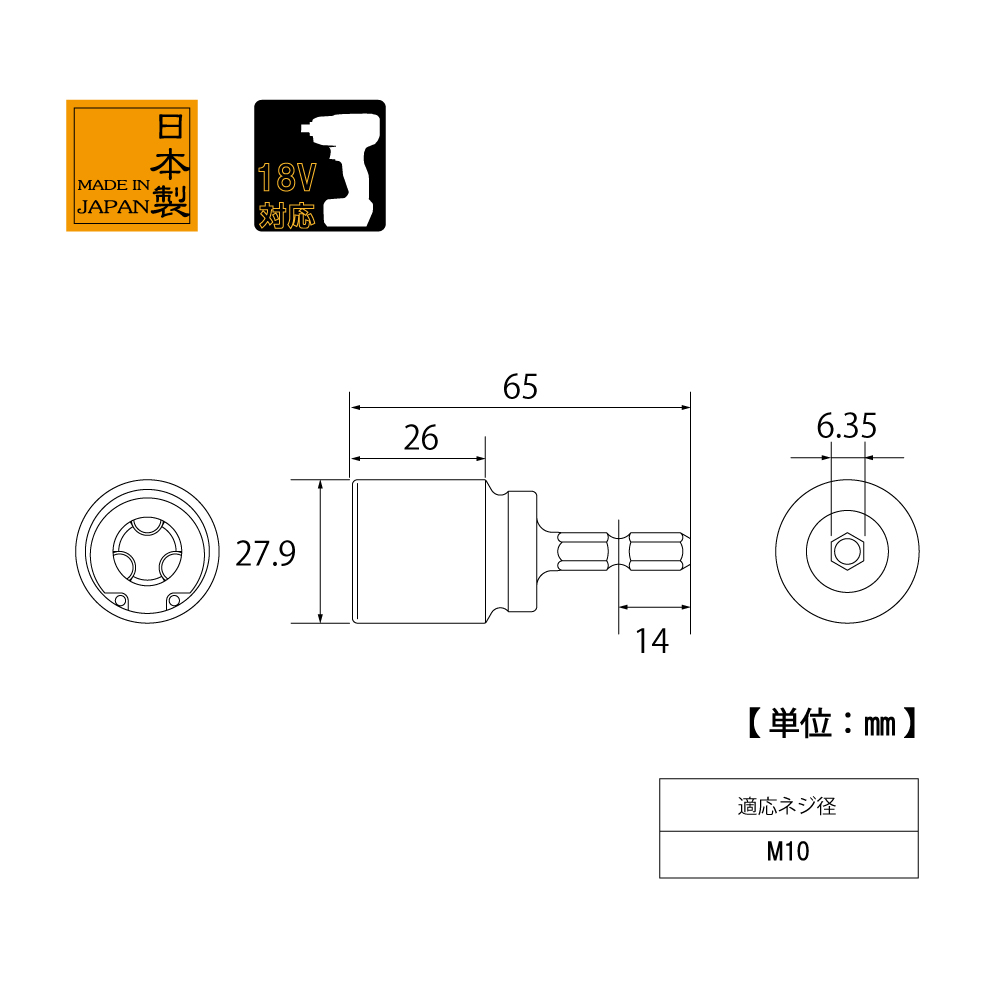 TOP Kogyo ZNS-M10 Fully threaded socket (M10) | EMIN.COM.LA