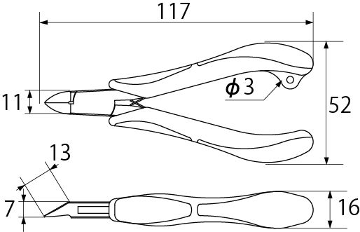 TOP Kogyo PN3-120 Pliers ຕັດ 3 ຊັ້ນ (φ3mm, plastic) | EMIN.COM.LA