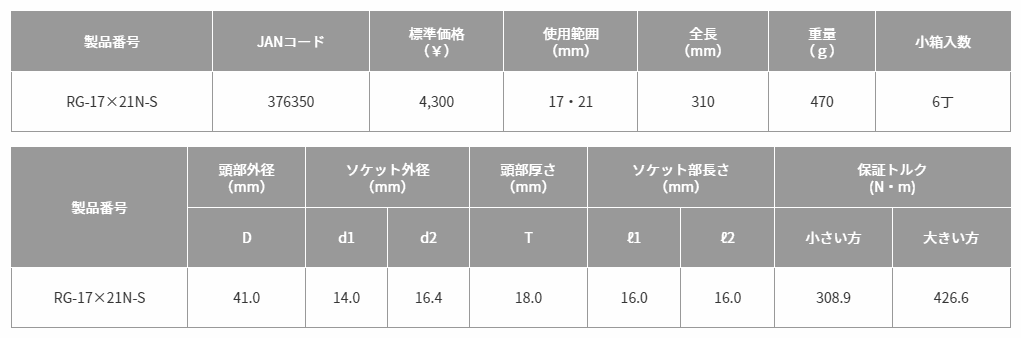 TOP Kogyo RG-17X21N-S ປະ​ຈຸ​ສອງ​ດ້ານ (17~21mm) | EMIN.COM.LA