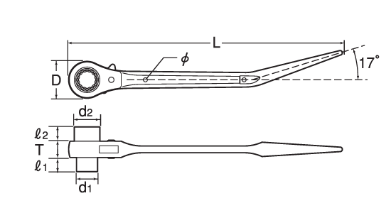 TOP Kogyo RM-17X19N-BT ກະຈົກສັ້ນ Ratchet Wrench (17~19mm) | EMIN.COM.LA
