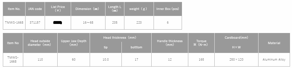TOP Kogyo TMWS-1668 ທໍ່ດັກສັ້ນ (16~68mm) | EMIN.COM.LA