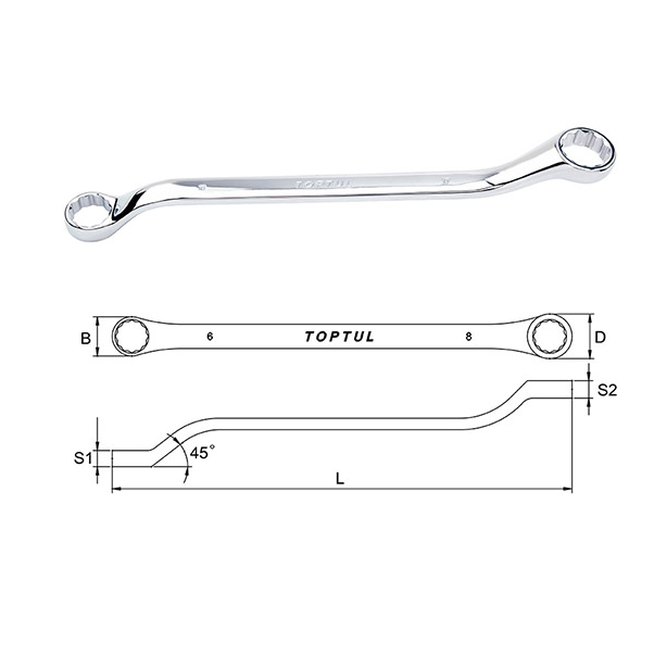 TOPTUL AAAH4146 Double Ring Wrench 45° Offset Mirror Polished (41x46mm) | EMIN.COM.LA