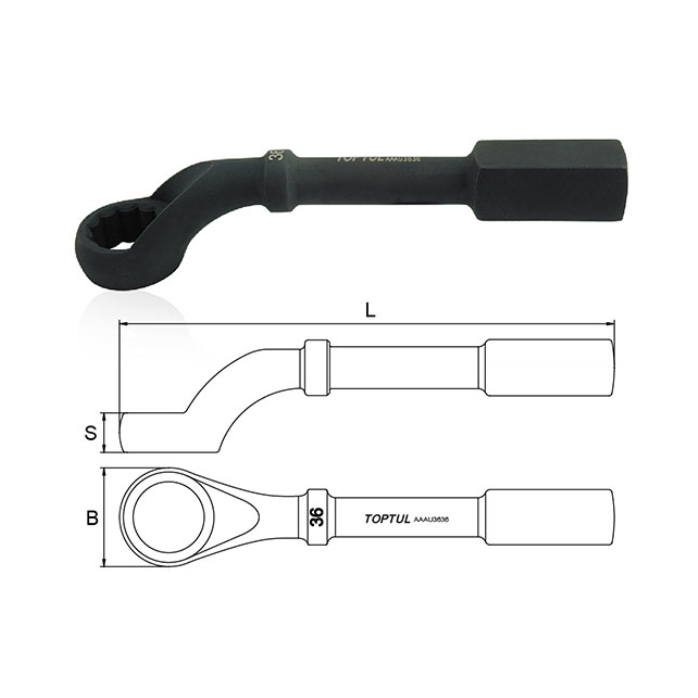 TOPTUL AAAU2727 Slogging Ring Wrench 45° Offset (27mm, L=250mm) | EMIN.COM.LA