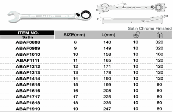 TOPTUL ABAF1111 Pro-Series Reversible Ratchet Combination Wrench (11 mm) | EMIN.COM.LA
