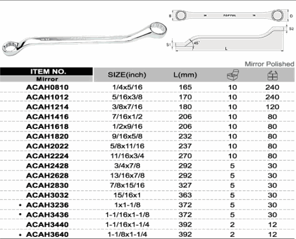 TOPTUL ACAH0810 Double Ring Wrench 45° Offset (1/4x5/16 inch) | EMIN.COM.LA