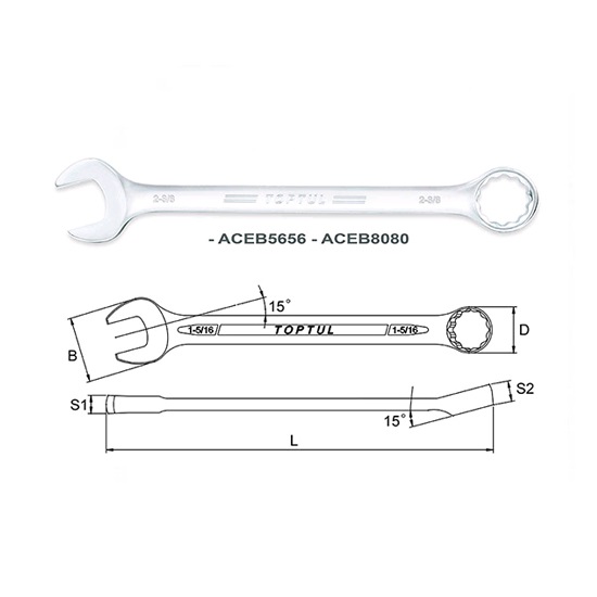 TOPTUL ACEB5656 ມາດຕະຖານ Combination Wrench Offset - SAE (1-3/4") | EMIN.COM.LA