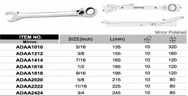 TOPTUL ADAA2222 Reversible Ratchet Combination Wrench (11/16 inch) | EMIN.COM.LA
