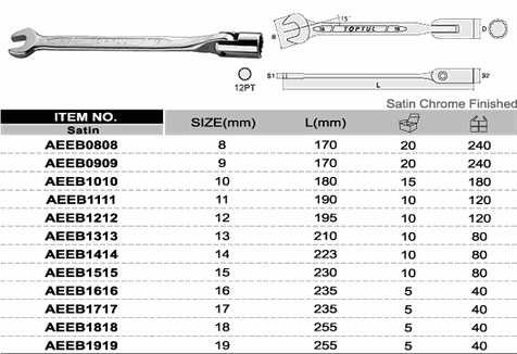 TOPTUL AEEB0808 Swivel-Socket Combination Wrench (8mm) | EMIN.COM.LA