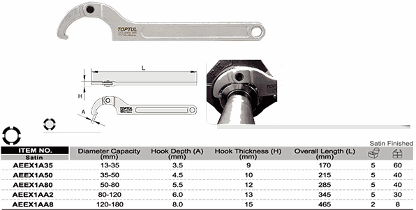 TOPTUL AEEX1A35 Hook Spanner Wrench ສາມາດປັບໄດ້ (13~35 mm) | EMIN.COM.LA