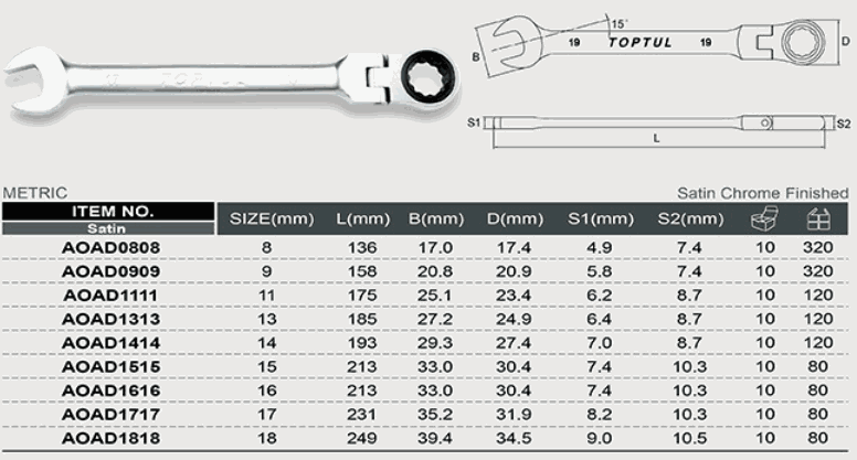 TOPTUL AOAD1111 Flexible Ratchet Combination Wrench (11 mm) | EMIN.COM.LA