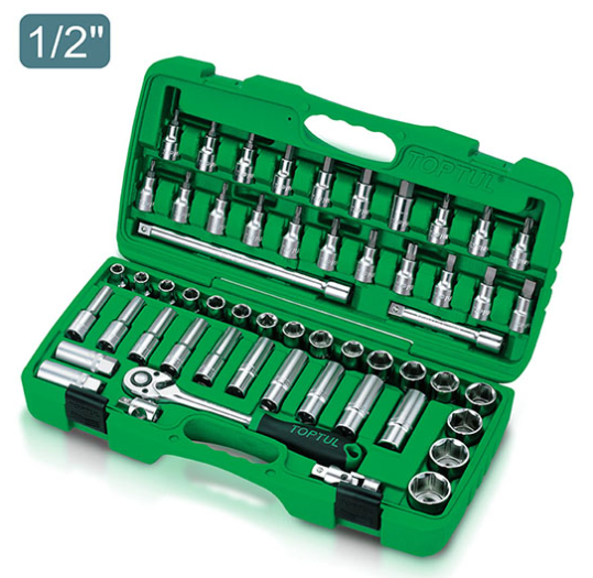 17pcs: BAEA1610~1632: 1/2" Dr. 6PT Flank Sockets: 10, 11, 12, 13, 14, 15, 16, 17, 18, 19, 20, 21, 22, 24, 27, 30, 32 mm