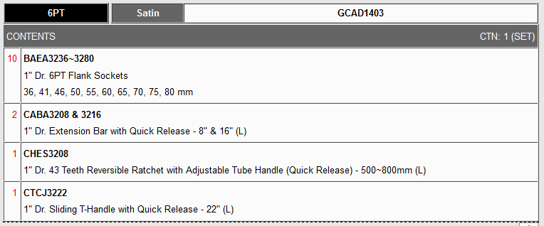 TOPTUL GCAD1403 14PCS ລະດັບມືອາຊີບ 1inch DR. ຊຸດ 6PT Flank Socket (METRIC) | EMIN.COM.LA