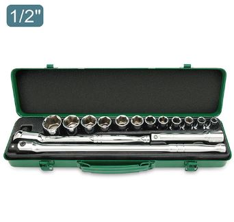 TOPTUL GCAD1508- 15PCS 1/2 inch DR. 6PT Flank Socket Set | EMIN.COM.LA