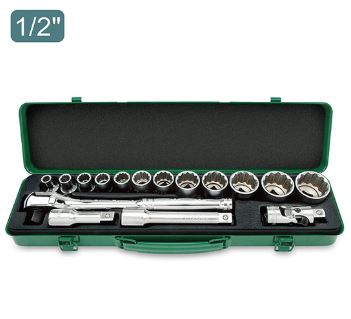 1/2" Dr. 12PT Flank Sockets BAEB1608~1632: 8, 10, 12, 13, 14, 17, 19, 22, 24, 27, 30, 32mm;