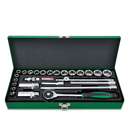 TOPTUL GCAD2610 ດຣ. 12PT Flank Socket Set Satin chrome / ກ່ອງໂລຫະ (3/8", 26PCS) | EMIN.COM.LA
