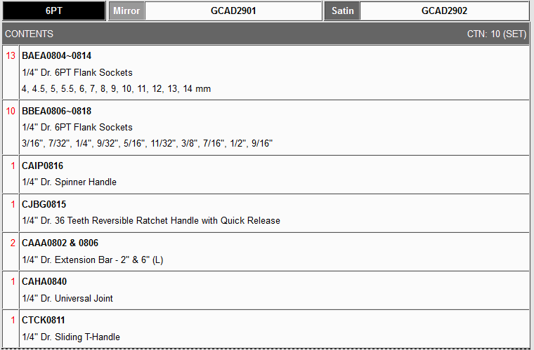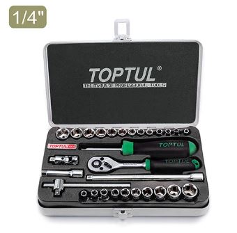 TOPTUL GCAD2901 29PCS 1/4 ນິ້ວ DR. ຊຸດເຕົ້າສຽບ 6PT (METRIC & SAE) | EMIN.COM.LA