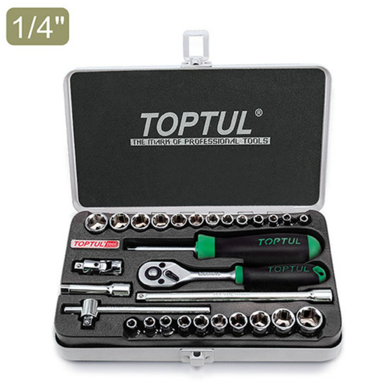 - 10 pcs BBEA0806~0818: 1/4" Dr. 6PT Flank Sockets (3/16", 7/32", 1/4", 9/32", 5/16", 11/32", 3/8", 7/16", 1/2", 9/16")