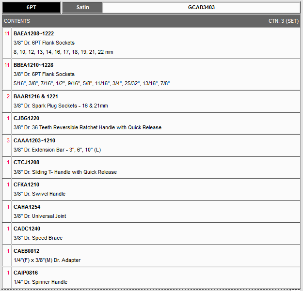 TOPTUL GCAD3403 34PCS 3/8 ນິ້ວ DR. ຊຸດເຕົ້າຮັບ (METRIC, SAE) | EMIN.COM.LA
