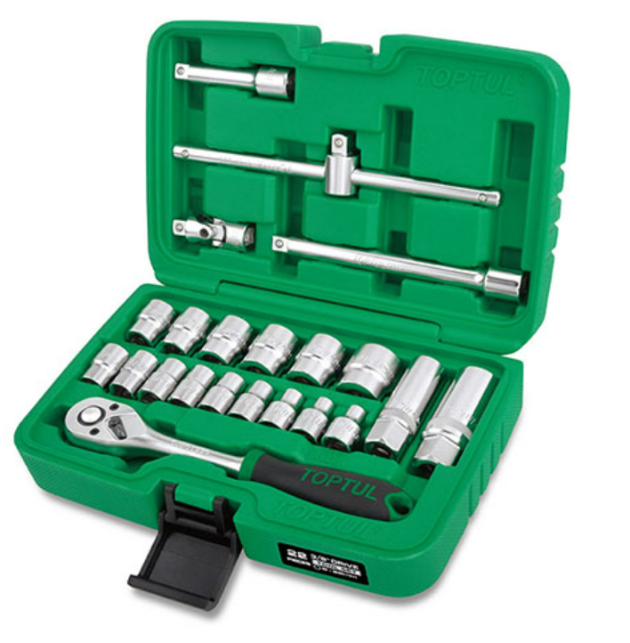 TOPTUL GCAI2201 ເກຣດມືອາຊີບ 3/8" DR. Flank Socket Set (22 pcs; 6PT; Mirror) | EMIN.COM.LA