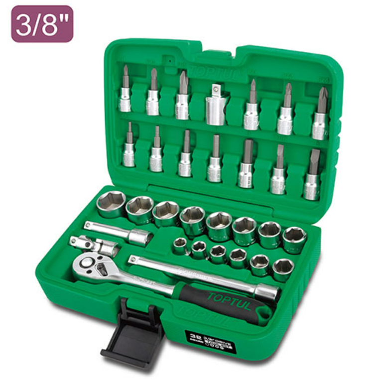 TOPTUL GCAI3202 ຊຸດ 3/8" DR. Flank Socket (32 pcs; 12PT) | EMIN.COM.LA